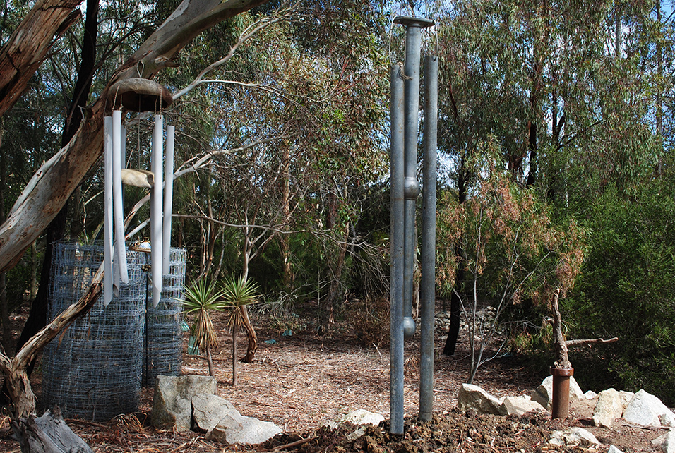 Sound garden is an evolving project on the edge of the @Dog Rocks property where native trees and landscape features create the feeling of forest. Different wind chimes, from traditional to quite quirky, generate a diverse palette of sounds. Some of these beautiful instruments are placed low enough to encourage you to test them and make your own soundscape.